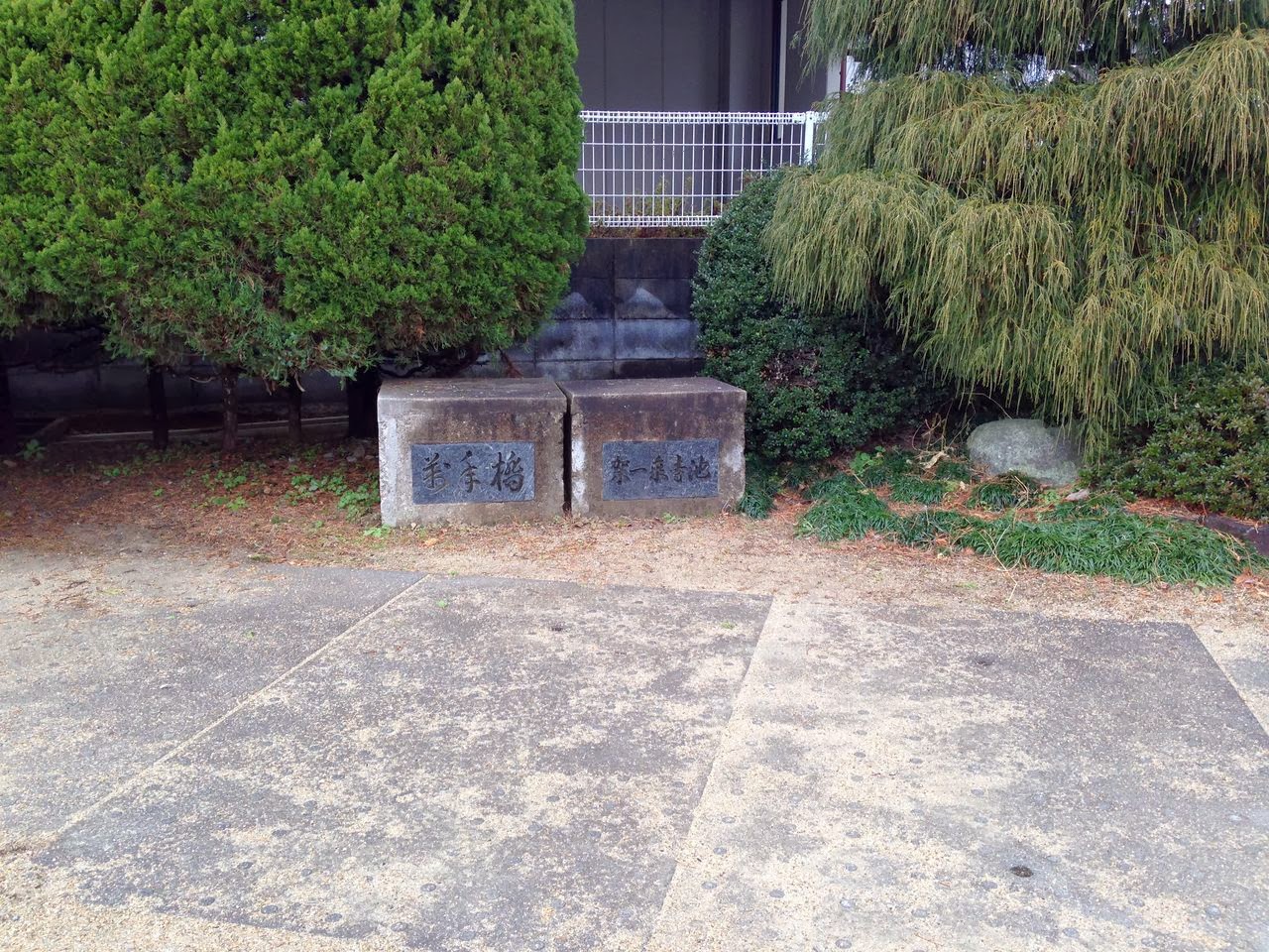 その横にはかつての橋の銘板らしきものが残されており、それには「架 一乗寺池」と書かれているので、以前は橋の両側が池であり、そこに小水路が流入・流出していたものが、水路幅以外は埋め立てられて公園などになったと推察されます。