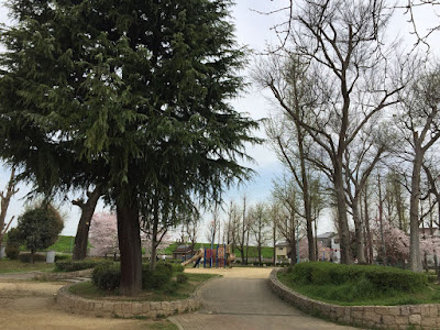 一方、もう1つの遊具広場は、幼児向けの遊具が集められており、ここはサクラに囲まれて華やかな雰囲気になっていました。