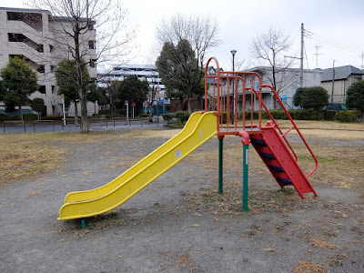 案内板では「緑にかこまれ、のんびりできる公園」と自ら名乗っていますが、実際は道路に接する2方向、住宅に接する2方向とも大きな樹はなく、どこからでも見通しのよい構造となっています。