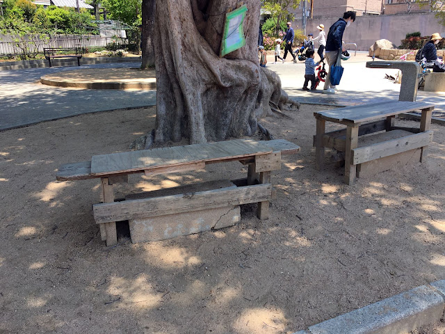 地域の大人たちが集まりやすい木陰のベンチや手作り縁台などもあり、かなり多様な年代の人に使われているようです。きっと地域のお祭なども、この公園を使っていることでしょう。