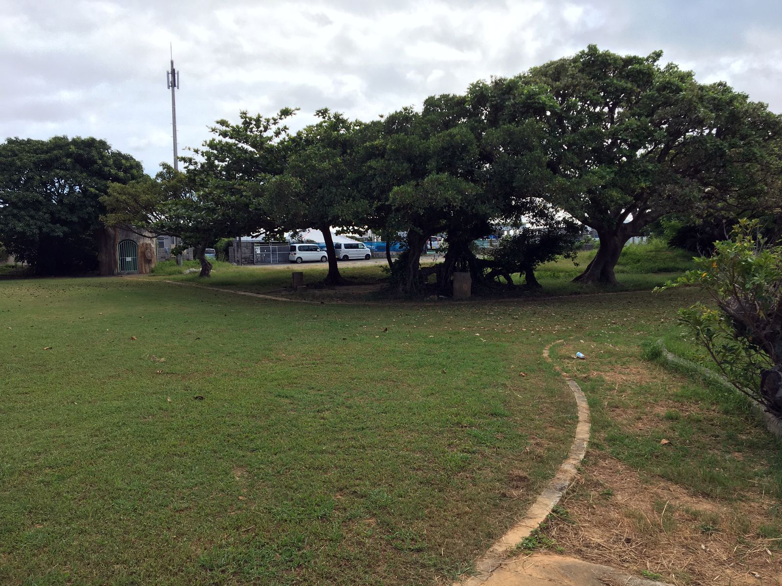 入ってみると園内は意外に広く、左右に草芝の広場が広がり、その先には高木が大きく育ってちょっとした林になっています。