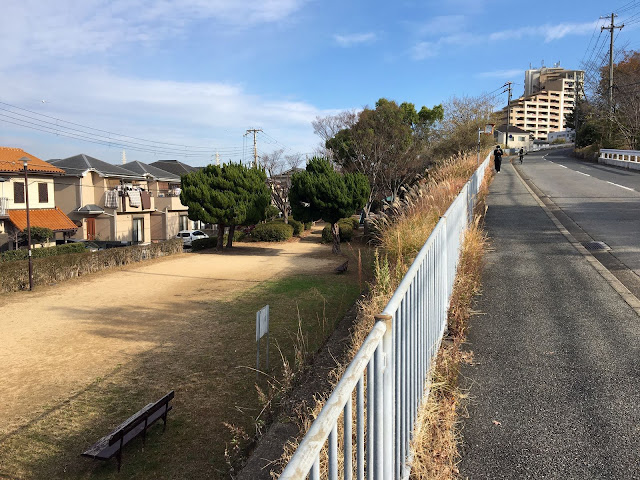 開発前の地図を見ると、現在の本多聞1丁目付近がまとまった集落となっており、そこから垂水駅方向(東南方向)へと向かう道が描かれています。いまは線形が変わっていますが、ここが狐坂という坂道なのだろうと思います。
