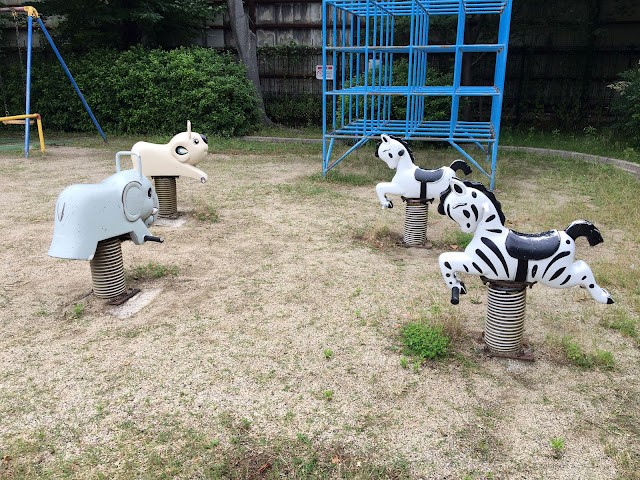 遊具には、特別に変わったものはありませんが、滑り台、ブランコ、揺れる動物遊具、ジャングルジム、シーソーなど一通りのものが揃っています。